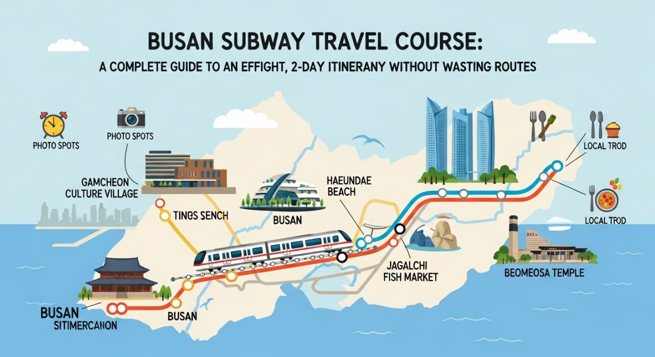 부산 지하철 여행 코스: 동선 낭비 없는 효율적인 1박 2일 일정 총정리 58 2025-09-15 | lily1978 | view | Tags 부산 지하철 여행 부산 1박 2일 부산 여행 코스 동선 낭비 없는 부산 3040 부산 여행 해운대 감천문화마을 자갈치시장 광안리 서면 부산 대중교통 부산 가볼만한 곳 |
